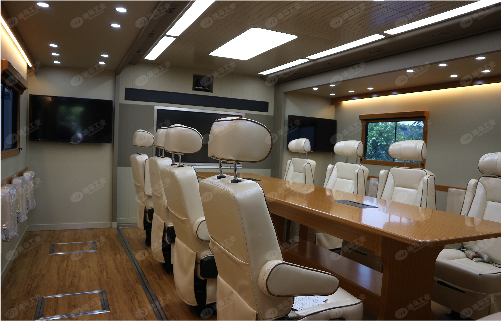 大型通信指揮車采用大型貨車進(jìn)行改裝,廂體擴(kuò)展后可容納26人同時舉行議。該車集成了衛(wèi)星通信系統(tǒng)、專網(wǎng)、公網(wǎng)通信系統(tǒng)以及指揮調(diào)度、現(xiàn)場會議現(xiàn)場辦公等系統(tǒng),廣泛應(yīng)用于各類應(yīng)急突發(fā)事件的現(xiàn)場通信保障、案情研判、決策指揮。具備大型移動指揮中心的功能。