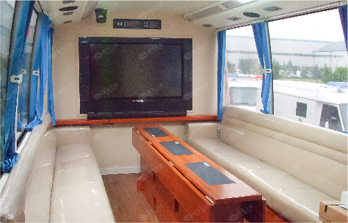 大客車類通信車采用大型客車進(jìn)行改裝,集成了衛(wèi)星通信系統(tǒng)、專網(wǎng)、公網(wǎng)通信系統(tǒng)以及指揮調(diào)度、現(xiàn)場會議、現(xiàn)場辦公等系統(tǒng)。廣泛應(yīng)用于各類應(yīng)急突發(fā)事件的現(xiàn)場通信保障、案情研判、決策指揮。具備大型移動指揮中心的功能。