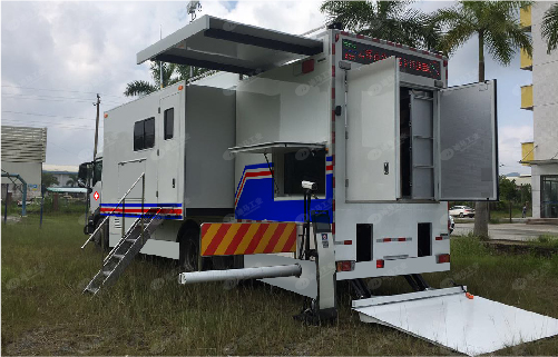 基礎(chǔ)建設(shè)子系統(tǒng)由依托車輛底盤為載體的可移動式大型公路檢查站及相應(yīng)配套設(shè)施組成,具體包含車輛底盤、遮擋雨棚、辦公區(qū)間、防疫識別區(qū)、視頻監(jiān)控、無線對講、圖像傳輸、集中控制、供配電、安全防護、安全警示、生活保障、物資儲運、環(huán)境安全輔助、人臉識別及智能溫度檢測等設(shè)備設(shè)施;用于檢查站勤務(wù)人員按工作規(guī)范、對過往人、車、物實施“逢車必查、逢疑必查”措施等。