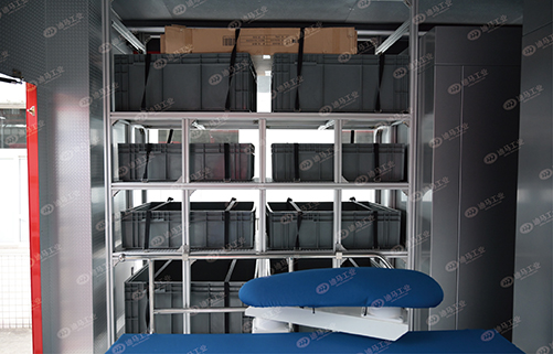 洗衣車選用東風天錦二類汽車底盤,上裝自制車廂,帶4立方水箱,配備水泵、發(fā)電機、外接電源兩套動力裝置、進排水設備、工業(yè)等級洗衣脫水機、烘干機、蒸氣機等設施。