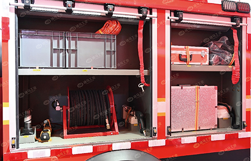 車輛采用東風(fēng)猛士MS600底盤,具有超強(qiáng)的越野性能,車輛搭載400L水+50L泡沫滅火劑,可將機(jī)動消防泵固定在車尾,通過泡沫泵正壓加注泡沫,出水流量反向控制泡沫泵轉(zhuǎn)速,從而達(dá)到控制泡沫混合比例。車輛配備直流水槍和水霧噴槍,適用于狹窄街道、巷道、城鎮(zhèn)小道以及蜿蜒山路等地形,對于撲滅初期火災(zāi)或控制初期火勢曼延具有良好效果。車輛還設(shè)有破拆器材、救援器材備用存放區(qū)域,滿足基本救援需求。