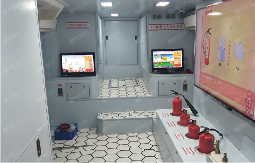 采用大型客車或城市公交底盤設(shè)計制造,可集成較多的功能,通過各種生動有趣的方式,對參與者進行消防知識的普及教育,使消防宣傳達到事半功倍的效果。