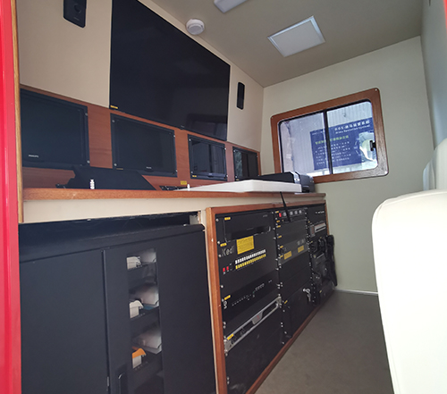 獨(dú)立供配電功能:系統(tǒng)所有的設(shè)備電力均以車載發(fā)電機(jī)及直流供電系統(tǒng)提供電力,并可以外接市電供電;安裝UPS以保證電流的穩(wěn)定輸出;所使用的設(shè)備均滿足電磁兼容指標(biāo)要求。