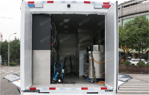 裝備(器材)運(yùn)輸車多采用貨車底盤作為裝載平臺(tái),有卷簾門式及翼開式兩種設(shè)計(jì),器材架采用鋁合金型材組成框架接口,具有上下可調(diào)整,隨意拼技的優(yōu)點(diǎn),能有效利用空間,并可配置車載電臺(tái)、液壓尾板等輸助設(shè)施,用于裝備或器材快速運(yùn)輸。