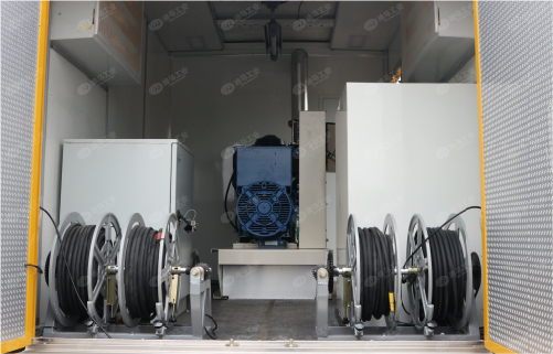 應(yīng)急電源車采用二類卡車底盤改裝,其上集成了發(fā)電機(jī)組、散熱系統(tǒng)、配電系統(tǒng)、靜音系統(tǒng)等,具備防水、防震、隔音功能,能在惡劣的環(huán)境下工作,為救援現(xiàn)場(chǎng)提供電力保障。
