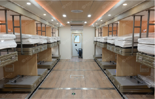 應(yīng)急宿營車采用貨車及客車底盤進(jìn)行改裝,適用于應(yīng)急隊(duì)伍野戰(zhàn)集訓(xùn)、搶險(xiǎn)救災(zāi)、處置突發(fā)事件等野外作業(yè),可同時(shí)滿足24人休息。