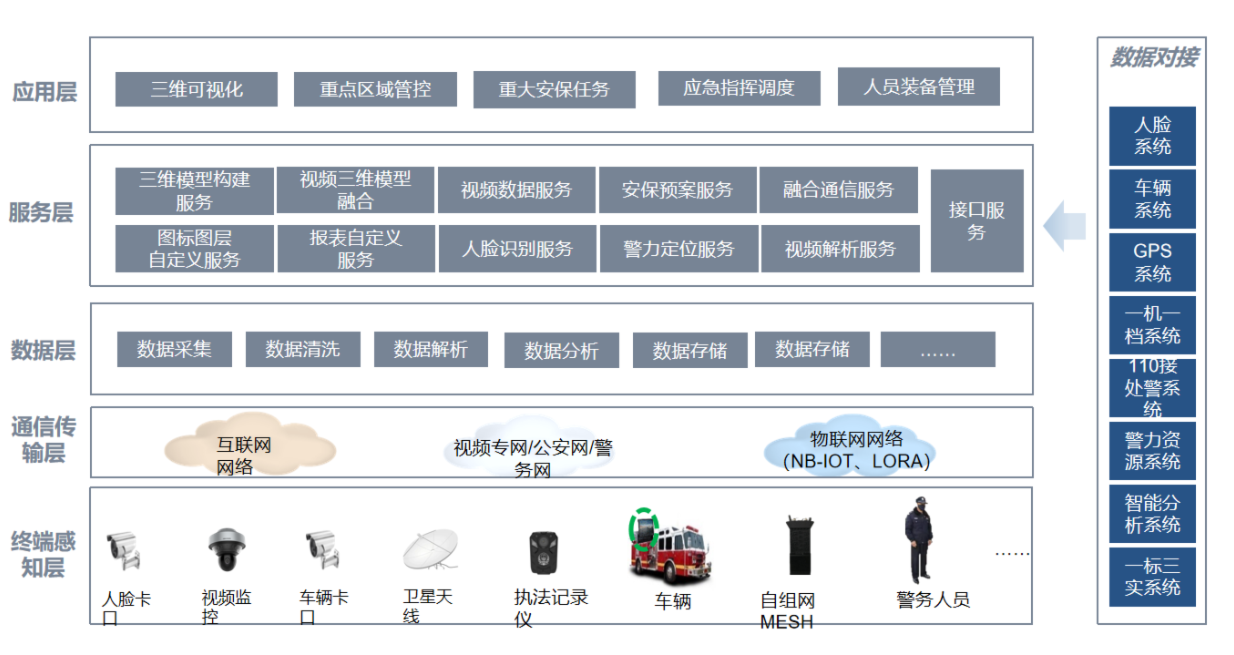 智慧公安三維實景立體防控平臺是綜合運用物聯網、云計算、大數據、AI、融合通信等前沿技術應用,以城市信息數據為基礎,依托于三維實景復刻的場景模式,對多維數據進行融合、治理、分析和使能,實現對實有人口的精準管理、對安全隱患的精準識別、對重點人員的精準管控、對實時警情的精準處置,為公安基層開展工作提供有力支撐,全面提升群眾安全感。